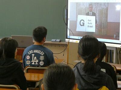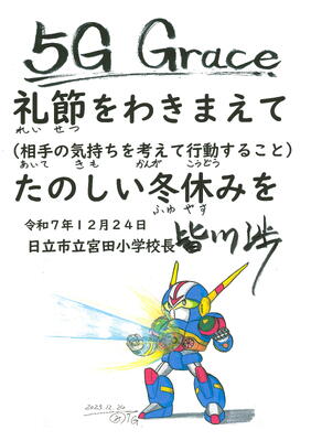 校長からは“5つのG(Go・Get・Guts・Grace・Global)の由来と、冬休みは特にGrace(礼節をわきまえる)を大切に生活してほしいという趣旨の話をしました。