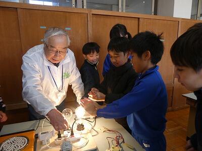 5年生の理科。日立理科クラブの方が授業支援を行ってくれました。電磁石を使った実験に一生懸命に取り組んでいました。