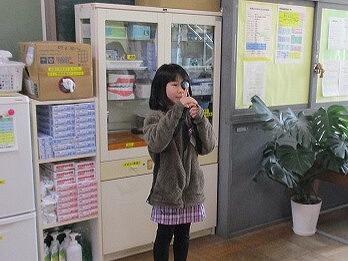 続いて代表児童2名が、1年間を振り返って、学びや生活について頑張ったこと、これから頑張りたいことを発表しました。はっきりとした声としっかりした態度で発表する姿が素晴らしかったです。