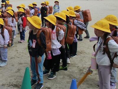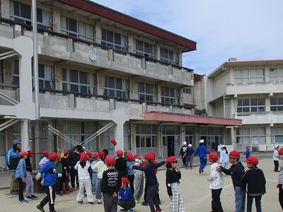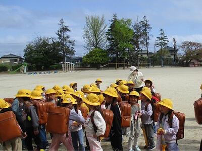 子どもたちは「お・か・し・も」を守り、真剣な表情で落ち着いて避難することができました。