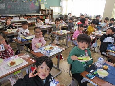 1年生は、昨日(4/16)から給食が始まったので、5時間目まで授業をして2年生と一緒に下校しました。