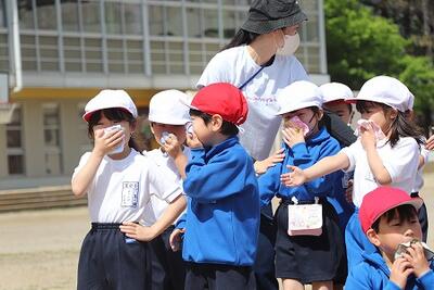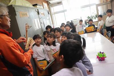 2年生の教室をのぞくと算数でハガキの長さを測っていました。