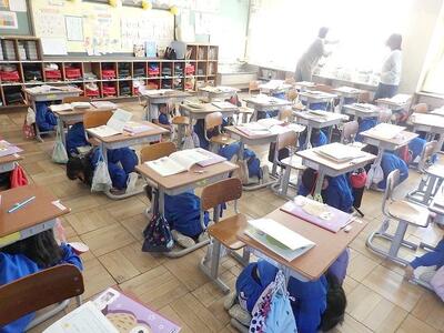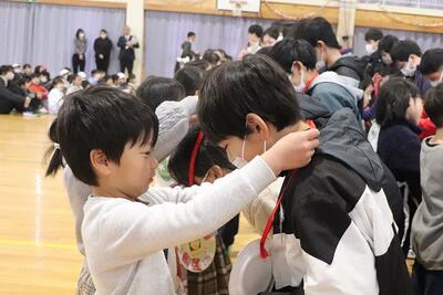 校長先生から「六年間の学びの集大成が卒業式です。礼に始まり、態度・姿勢・返事・呼びかけ・歌と、すべてが六年間の学びの表れともいえます。今日できたことに、さらに磨きをかけて式に臨んでください」いうお話をいただきました。