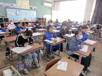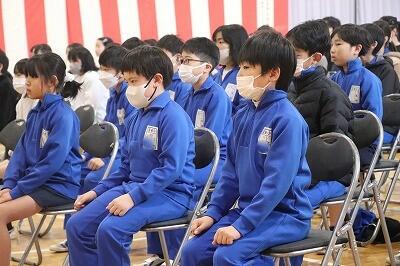5年生も在校生代表として式に臨みます。素晴らしい姿勢です。