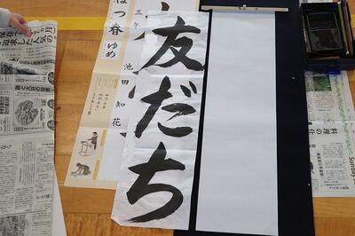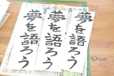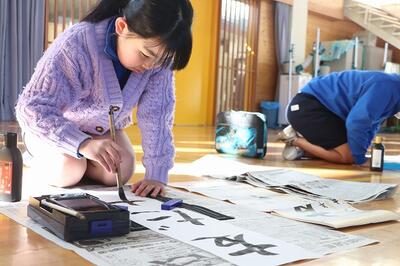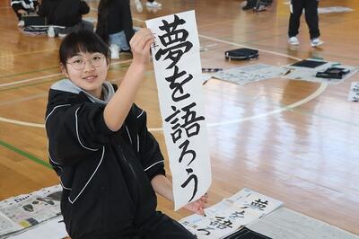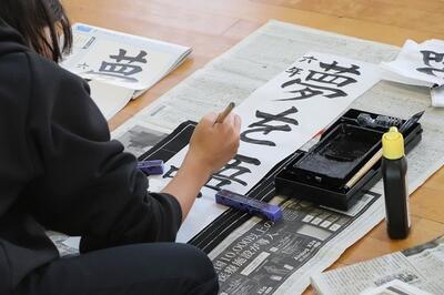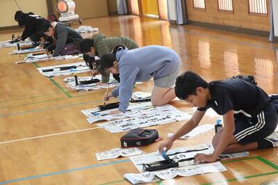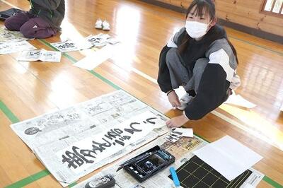 6年生の書初めは、終始、凛とした静寂に包まれて