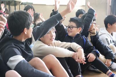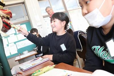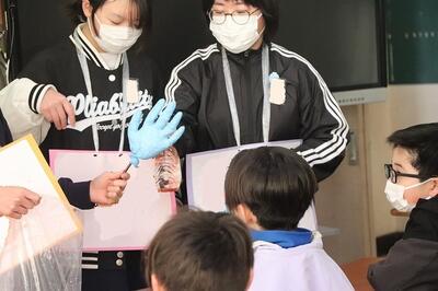 最初は怖がる子もいましたが,ご褒美をもらうと