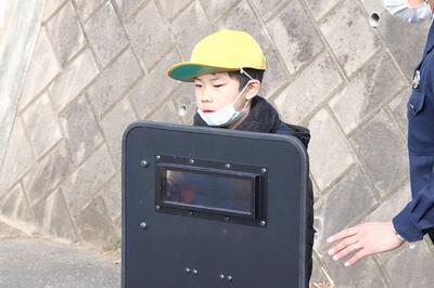 実際に盾を持ってみたり防刃ベストを着させてもらって