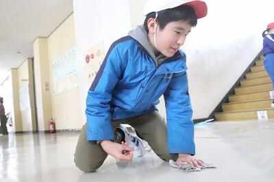 固く絞ったぬれ雑巾で廊下を拭くのですが,