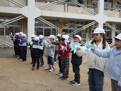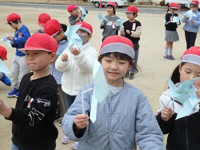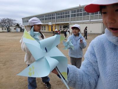 1年生が生活科の学習で“かざぐるま”を回していました。