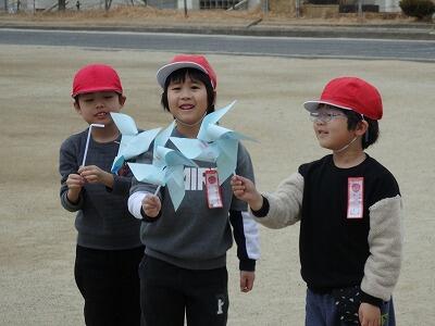 冬の乾いた風を受けて、手作りかざぐるまがくるくると回っていました。