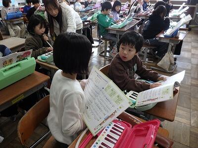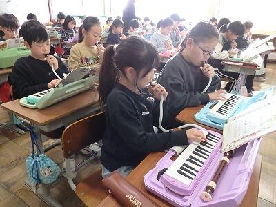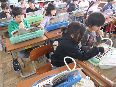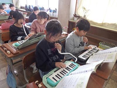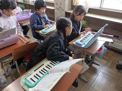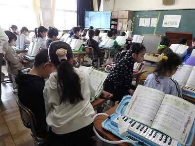 3年生の音楽、鍵盤ハーモニカでの演奏を練習していました。