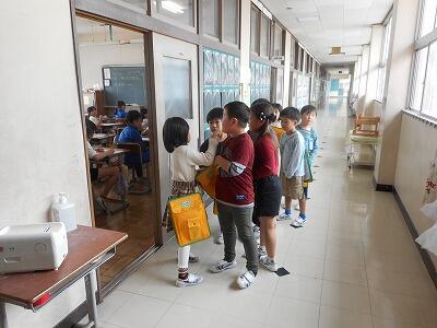 保健室では養護教諭の先生から聞き取ったことを、しっかりメモしていました。