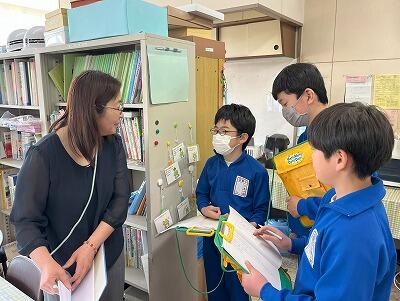職員室では、教頭・教務主任・用務士・ALTのそれぞれの先生から、いろいろなお話を聞き取っていました。