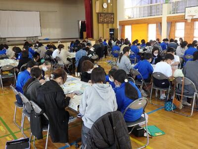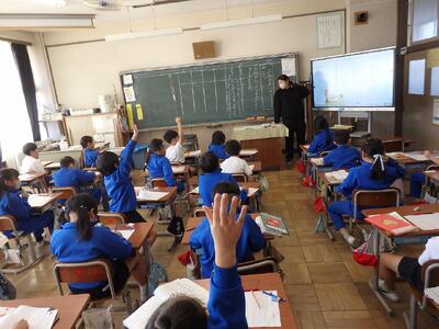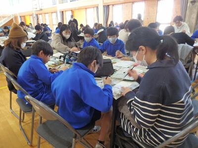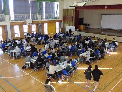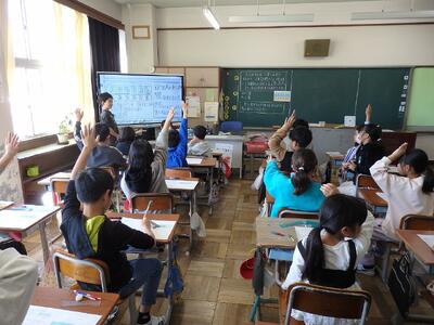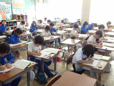 先週の金曜日、給食の時間に事務局委員から昇降口にスローガンを掲示したことが、全校児童に伝えられました。