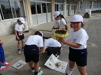 10月8日の宮田小 運動会準備とヒマワリのたね!