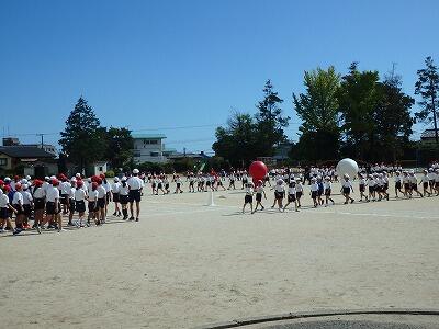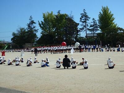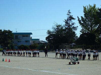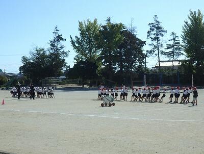 運動会のフィナーレを飾る種目です。競技するだけではなく、入退場の動き・待機するときの態度など、しっかり学んでいました。