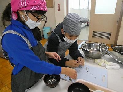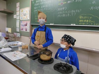 5年生が家庭科の授業で、2回目の調理実習に取り組んでいました。