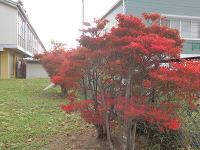 体育館脇のドウダンツツジも鮮やかに色づいてきています。