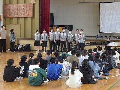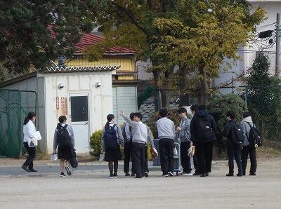 日専校の皆さんがお帰りになるときには、6年生が教室から手を振って別れを惜しんでいました。(写真は手を振り返す日専校の方です)