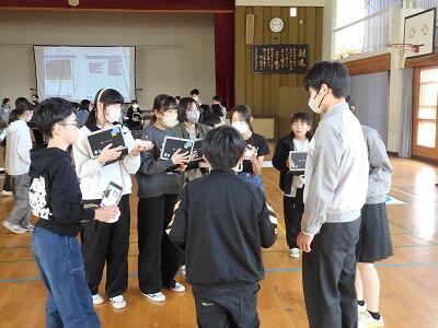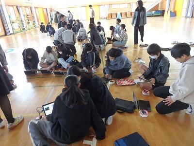 日立シビックセンターのアウトリーチ事業を活用して、日立工業専修学校(日専校)の生徒さんをお招きし、6年生がプログラミング学習を行いました。
