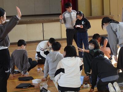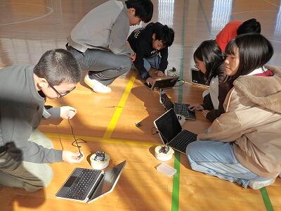 11月26日の宮田小② アウトリーチ!6年生・マイクロBITでカーリング
