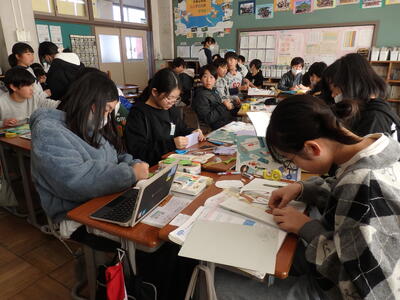 昼休み、環境委員が花壇にパンジーやビオラを植えていました。