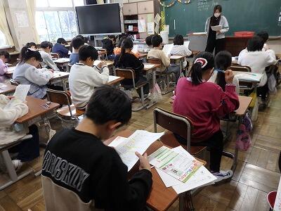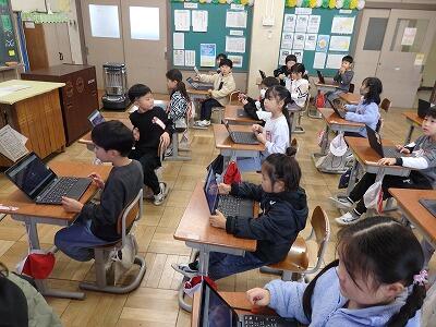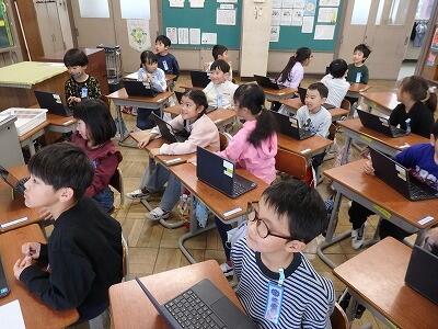 3年生はタブレットを使った学習の振り返りや、冬休みのしおりの読み込みをしていました。