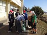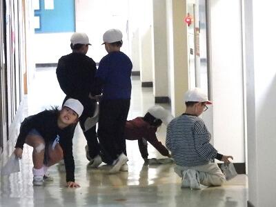 終業式前、1年生がみんなで使うところの掃除を進めていました。