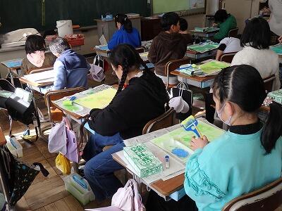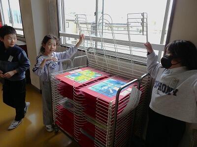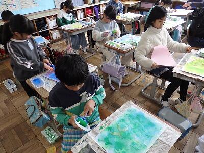 3年生の教室では、2組が図工で紙版画に挑戦していました。