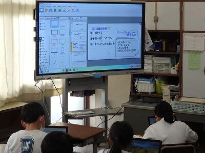 1組では、警察署見学で学んだことを、プレゼンテーション形式でまとめていました。