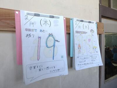 6年生の教室の前には、卒業式までのカウントダウンカレンダーが掲示されています。