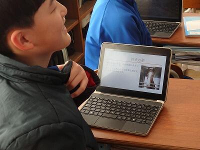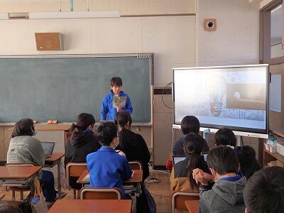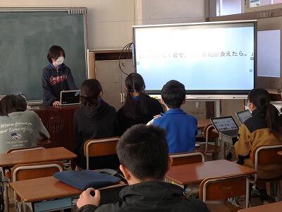 1組では「将来の夢」の発表会。キャリア教育の一環として、「なぜ、その職業に就きたいのか」を明確にしながら、プレゼンテーション形式で発表していました。