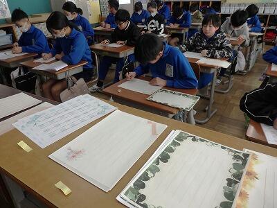 2組では、卒業プロジェクトのひとつ「先生方への手紙」を書いていました。しっかりとした文字で、気持ちをこめて一生懸命に書いている姿が印象的でした。