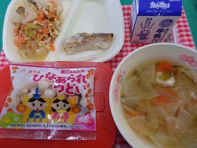 今日の給食は、桃の節句にちなんで、ひなまつり献立でした。