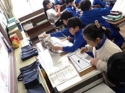 3年生音楽、楽器の演奏に取り組んでいました。みんな上手でした。