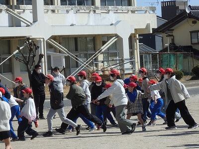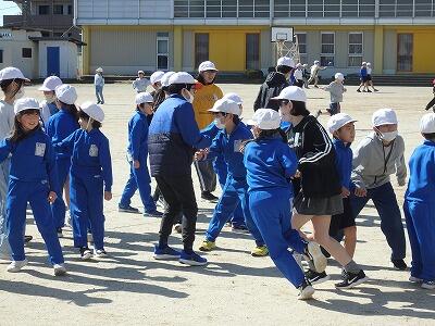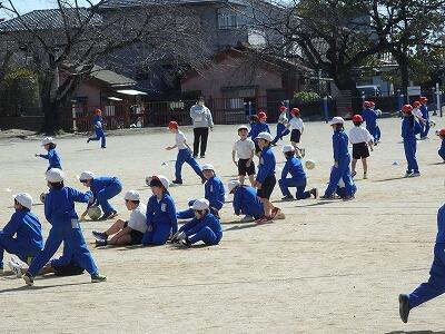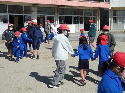 その2年生、中休みには6年生と「だるまさんが転んだ」で楽しんでいました。