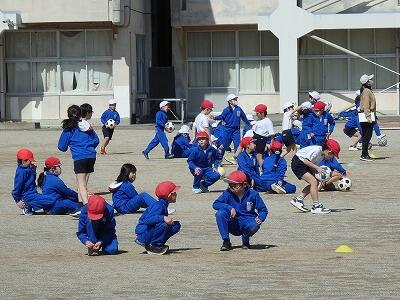 2年生の体育、サッカーボールを追いかけていました。