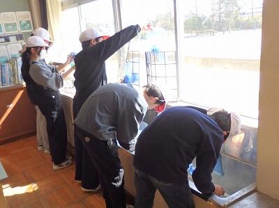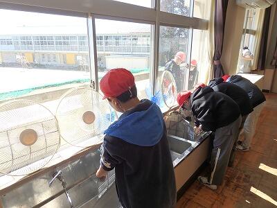 ほこりを落として、水洗いをして、乾かしていました。6年生のおかげで、気持ちよく生活できます。