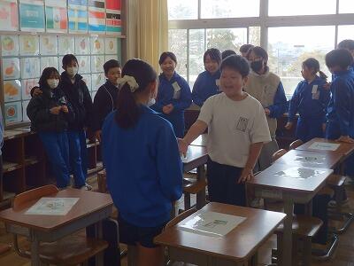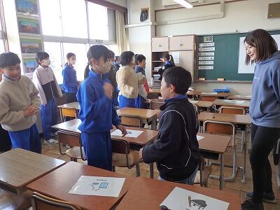5年1組の外国語活動。単語を確認しながらジャンケンゲームです。