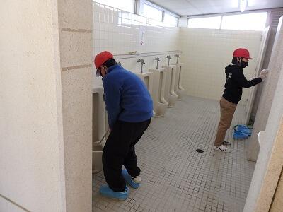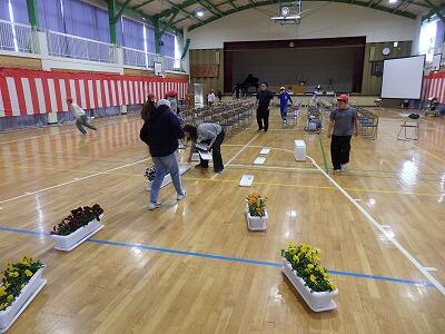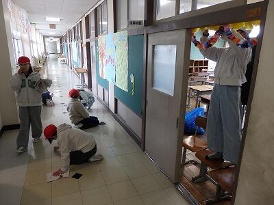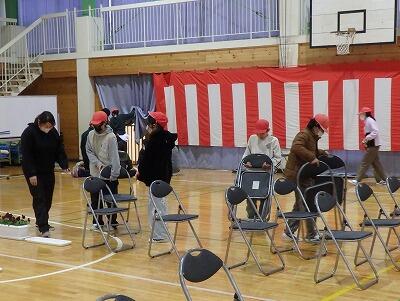 1~4、6年生の下校後、5年生が卒業式の準備を行いました。