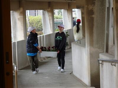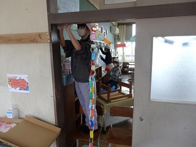 仲間とともに協力して式場や教室の装飾、掃除を一生懸命に行っていました。